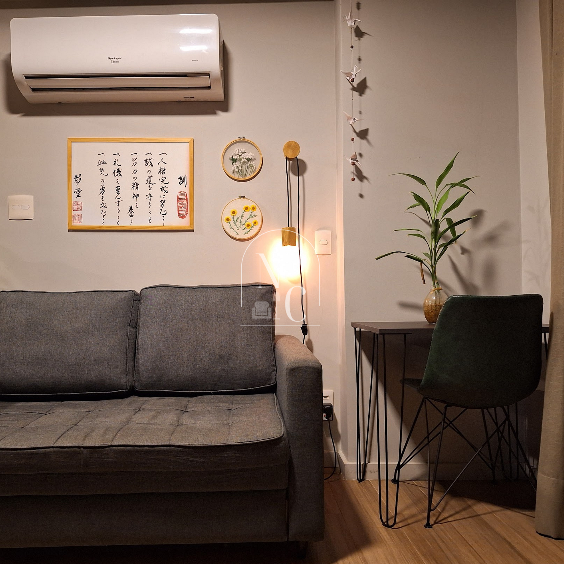 No apartamento 704 você irá encontrar uma cama de casal, edredom, travesseiros e cobertas extras, um sofá , TV, armário com cabides para guardar as roupasuma mesa alta de jantar para 2 pessoas, utensílios para cozinhar, fogão a indução, geladeira.