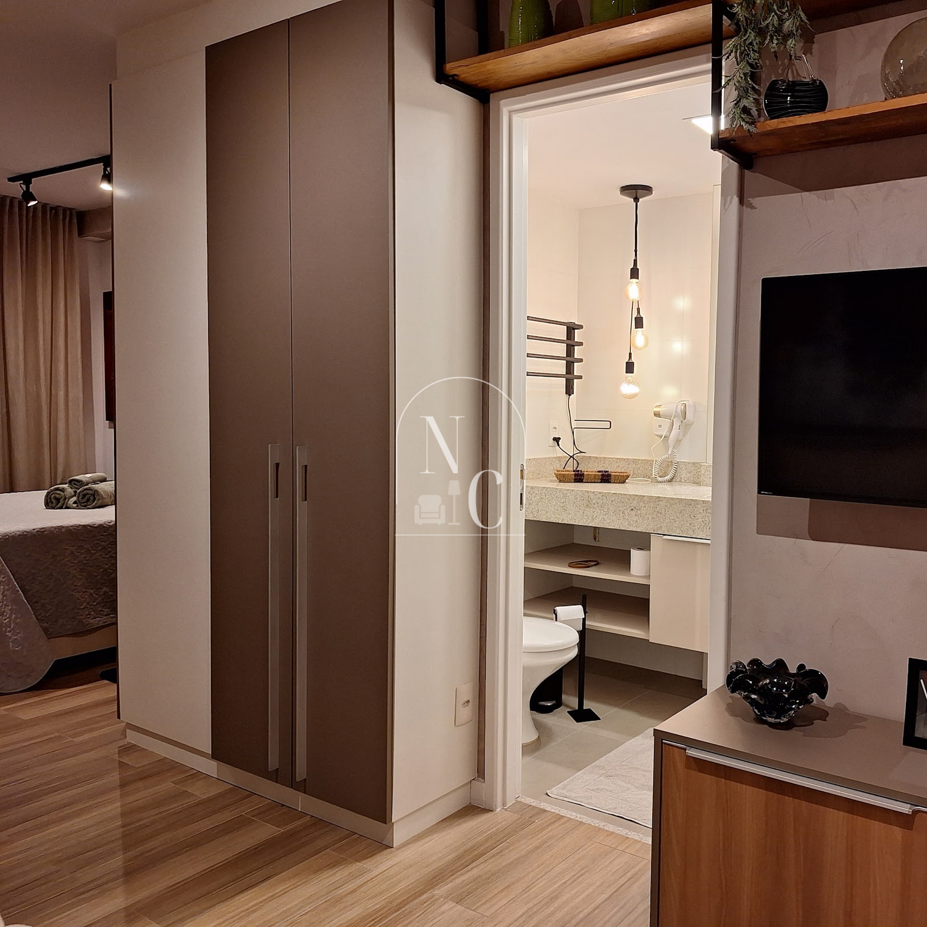 No apartamento 406 você irá encontrar uma cama de casal, edredom, travesseiros e cobertas extras, um sofá cama, duas SmartTV, armário com cabides para guardar as roupas, uma mesa de jantar para 4 pessoas, utensílios para cozinhar, fogão de indução, geladeira, microondas.