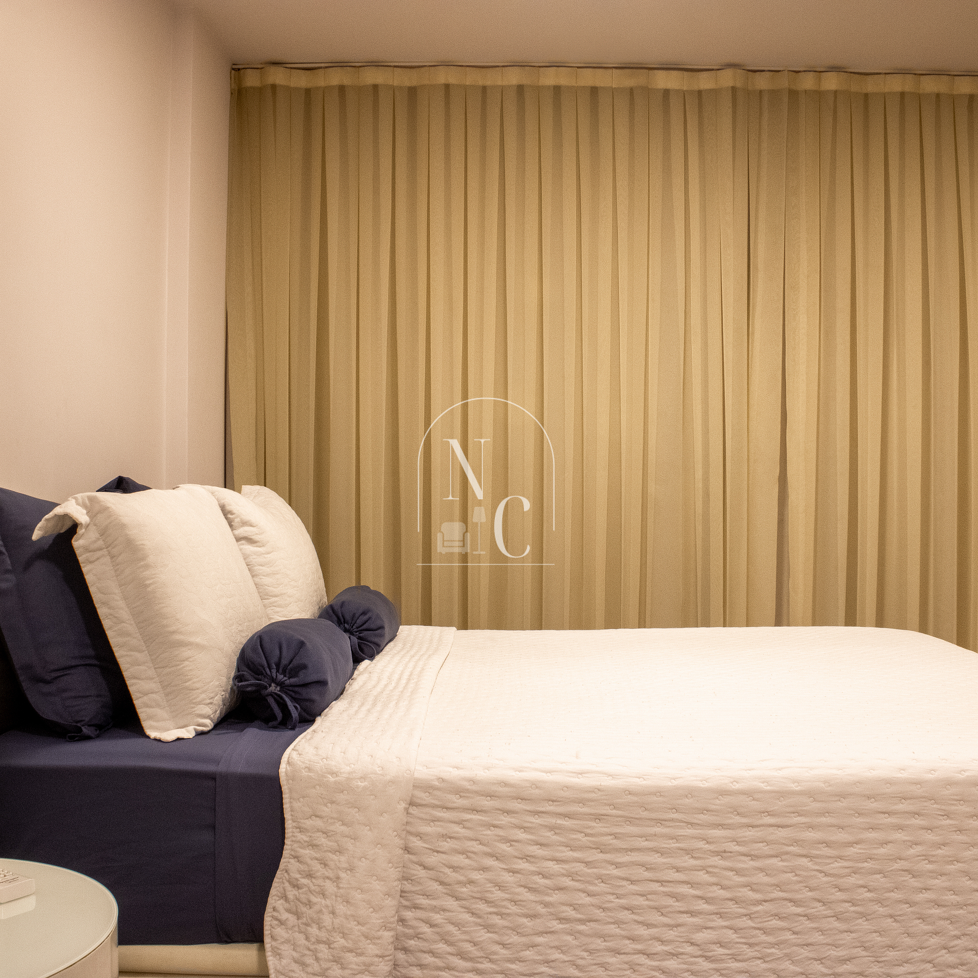 Ar-condicionado e cortinas blackout para conforto térmico e acústico